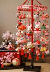 吊るし飾り(つるしかざり)は、布で作った小さな人形や縁起物を糸で吊るし、
